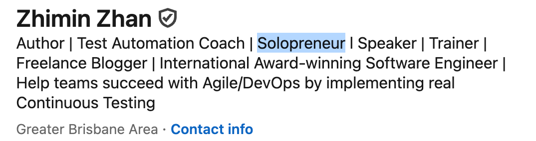 Perhaps a few readers have noticed that I’ve added "Solopreneur" to my LinkedIn profile.